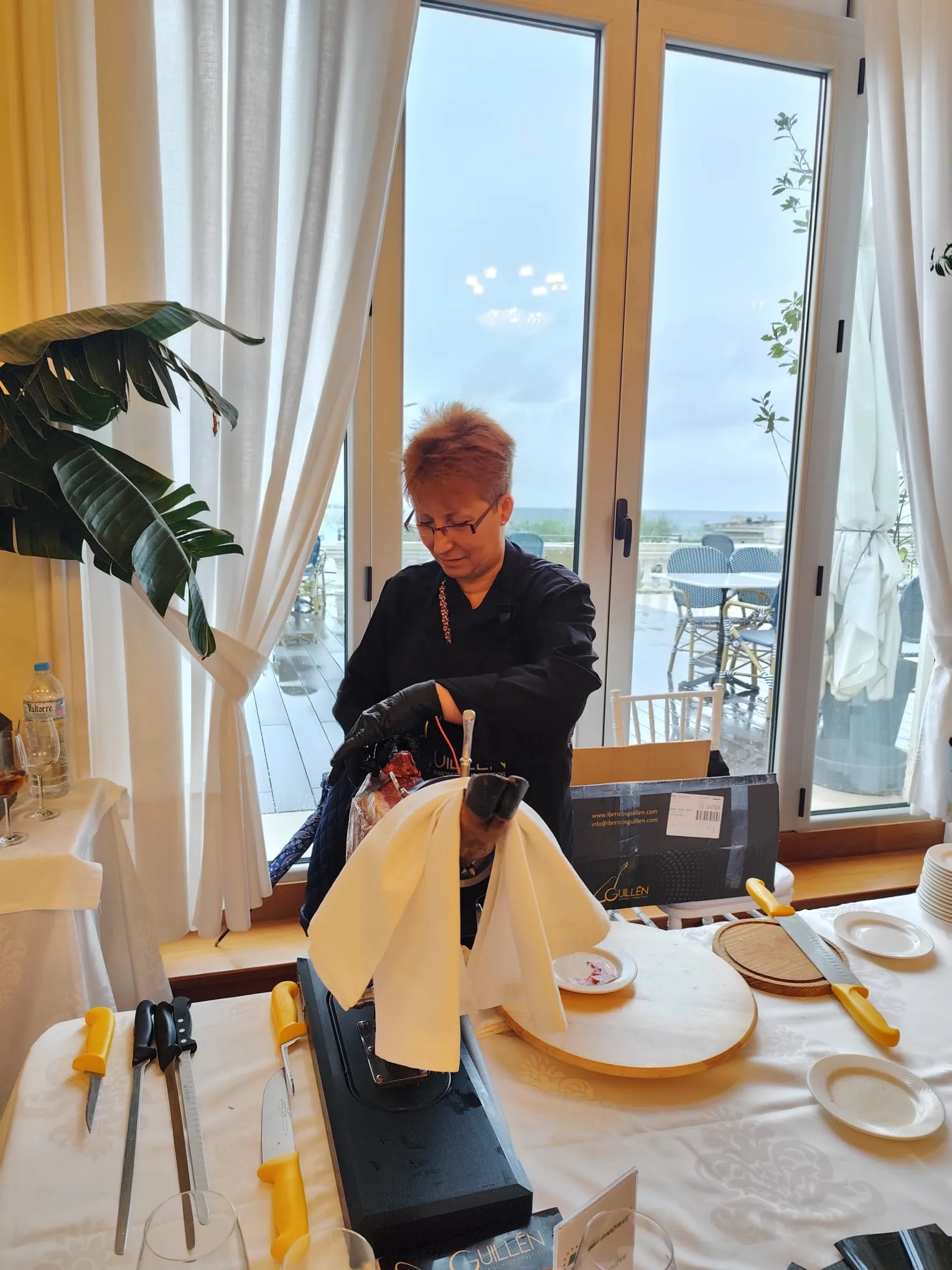 La presencia de un cortador de jamón en eventos evoca la rica tradición gastronómica de España. Cada loncha cortada a mano cuenta una historia de dedicación y pasión por la excelencia gastronómica, recordando que en España, la comida es una expresión de identidad y orgullo cultural. El cortador de jamón se convierte así en un embajador de la cultura española, llevando consigo el sabor único del jamón ibérico y el espíritu acogedor de una nación que celebra la vida a través de sus sabores arraigados y tradiciones compartidas.